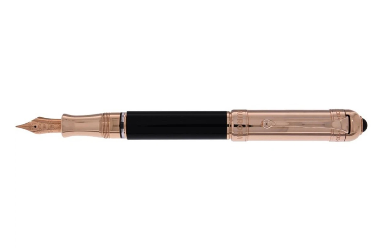 De Cupola pen is de laatste pen in de collectie van tien unieke pennen. Dit schrijfinstrument heeft een roségouden dop en de houder is van zwarte lak. Het is afgewerkt met een 18-karaats gouden penpunt.