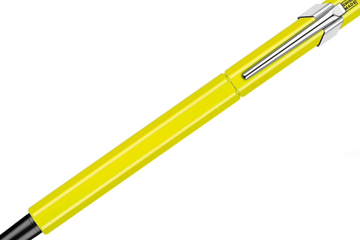 Vier fluokleuren – paars, groen, geel en oranje – geven de grafische lijnen een extra vonk. Het matte marineblauw en zwart versterken het eigentijdse design en de industriële esthetiek van deze schrijfinstrumenten. Het gelakte wit brengt een element van evenwicht in deze verfrissende wervelwind van plezier. Met behoud van een 100% Swiss Made kwaliteit onderstreept de 849 vulpen de gedurfde, creatieve geest van Caran d’Ache.