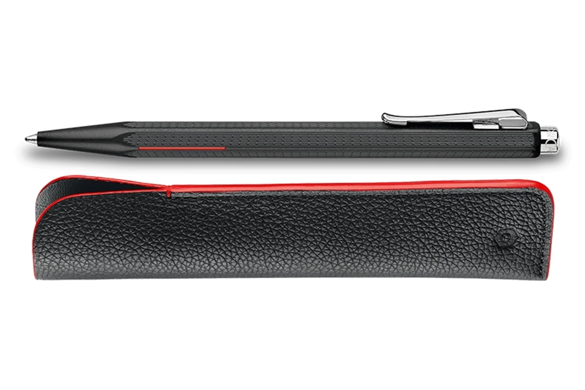 De Ecridor Racing set “herinterpreteert op subtiele wijze de codes van de auto-iconografie”, zoals vermeld door Caran d’Ache. Uitgerust met een strak matzwarte behuizing in guillochepatroon en chroom afwerking, is deze pen de belichaming van moderne stijl.
