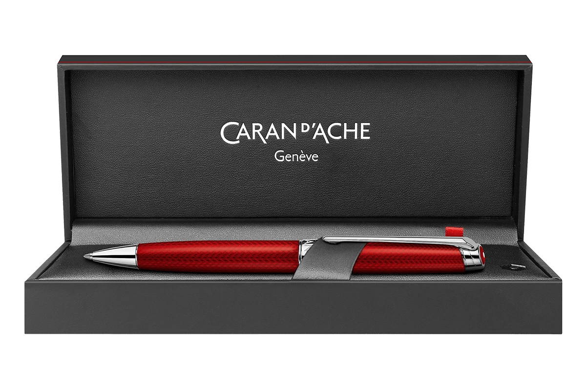 Deze balpen heeft een kubistisch guilloche patroon welke daarna is afgewerkt met meerdere lagen transparant rode lak.