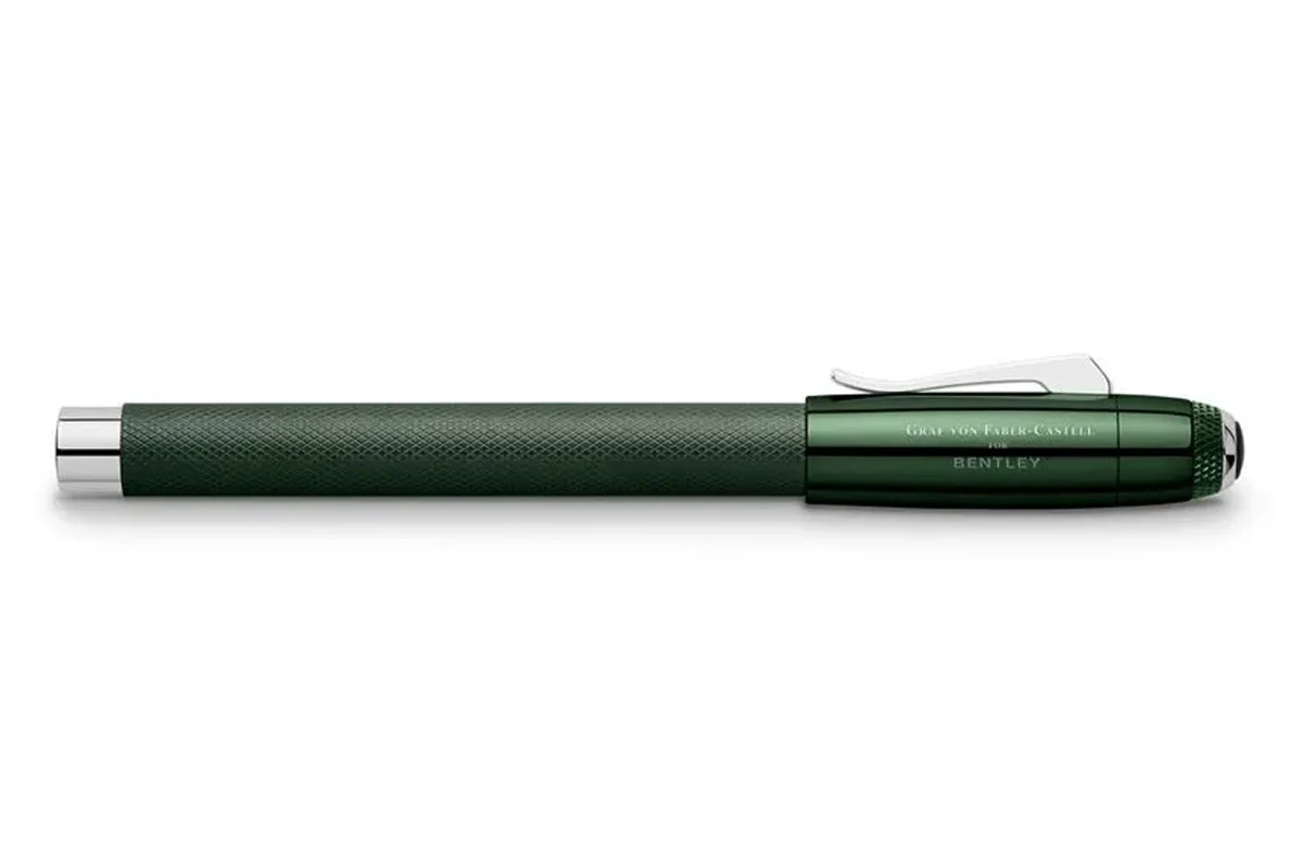 De Graf von Faber-Castell for Bentley vulpen heeft een 18kt gouden penpunt en maakt gebruik van een cartridge/converter vulmechanisme.