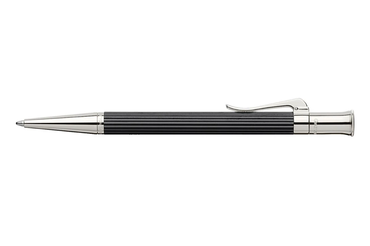 De Classic collectie van Graf von Faber-Castell combineert de natuurlijke uitstraling van hout met de koele elegantie van geplatineerde oppervlaktes. Het lichaam van deze balpen is op verfijnde wijze geribbeld, en uitgevoerd in donker ebbenhout. Dit type hout is bijzonder hard en duurzaam, waardoor het niet eenvoudig te bewerken is. Dankzij het natuurlijke verschil in textuur en kleur is ieder schrijfinstrument uit deze collectie uniek.