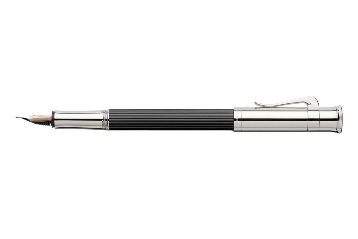 De Classic collectie van Graf von Faber-Castell combineert de natuurlijke uitstraling van hout met de koele elegantie van geplatineerde oppervlaktes. Het lichaam van deze vulpen is op verfijnde wijze geribbeld, en uitgevoerd in donker ebbenhout. Dit type hout is bijzonder hard en duurzaam, waardoor het niet eenvoudig te bewerken is. Dankzij het natuurlijke verschil in textuur en kleur is ieder schrijfinstrument uit deze collectie uniek.