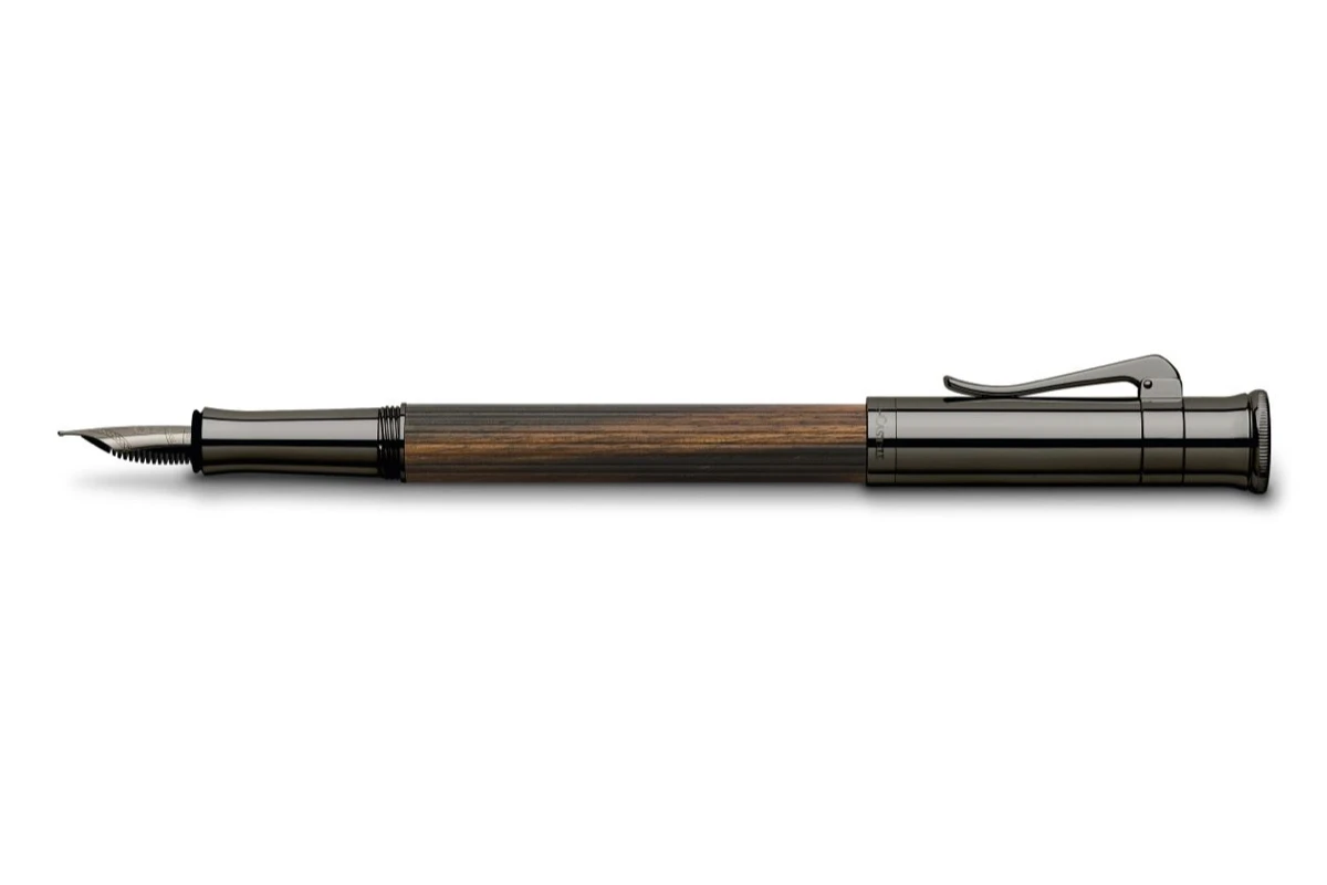 De Graf von Faber-Castell Classic Wood Macassar Vulpen is verkrijgbaar met de penpunten F (Fine), M (Medium), B (Broad) en EF (Extra Fine) en heeft een stevige houten doos als verpakking.