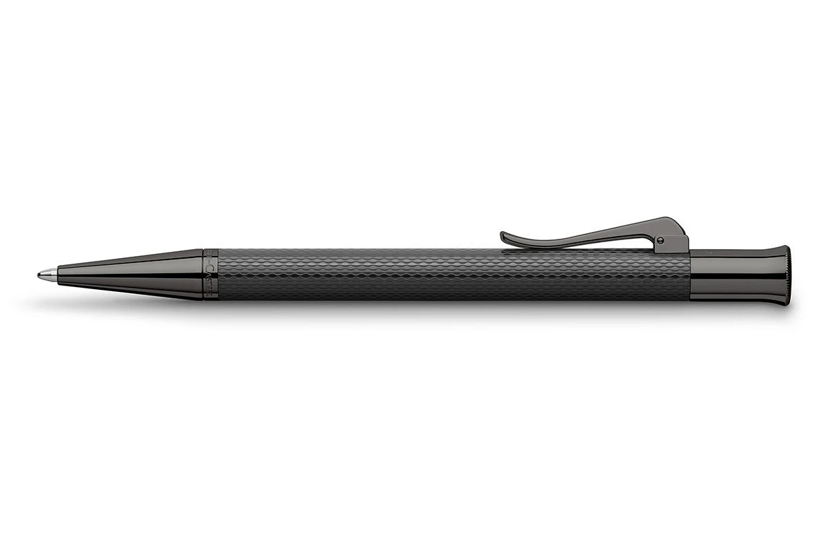 De body is gemaakt van geguillocheerd edelhars, Black Edition, met metalen afwerking met titanium PVD-coating. De pen heeft een stevige, veerbelaste clip en een zwarte vulling met pen-dikte M.