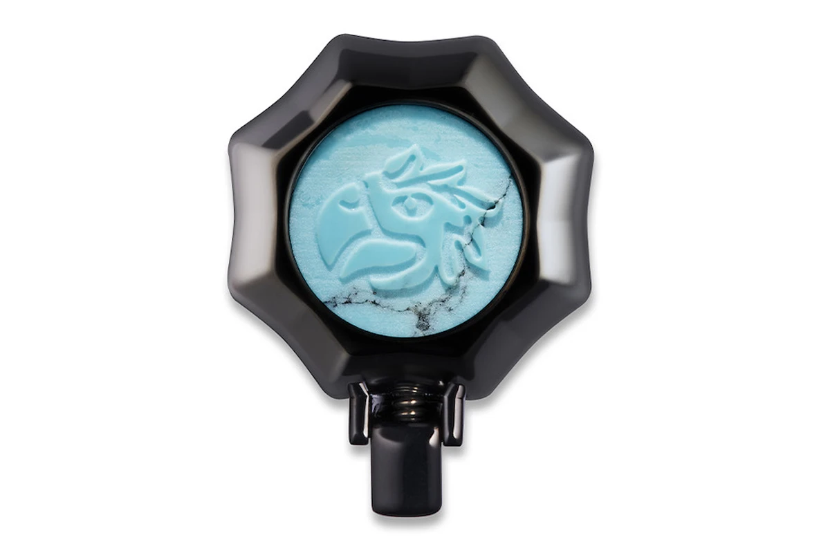 - De bovenkant van de dop is versierd met een turquoise edelsteen, gegraveerd met een adelaar