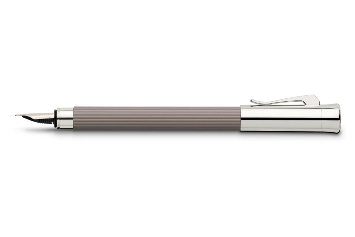 De schrijfinstrumenten in de collectie Tamitio (Graf von Faber-Castell) zijn bijzonder elegant en verfijnd vormgegeven. Het lichaam van deze taupe vulpen is gerhodineerd en op geavanceerde wijze gelakt. Daarbij is een innovatief type lak gebruikt, zodat het oppervlak langdurig zijn initiële matheid behoudt.