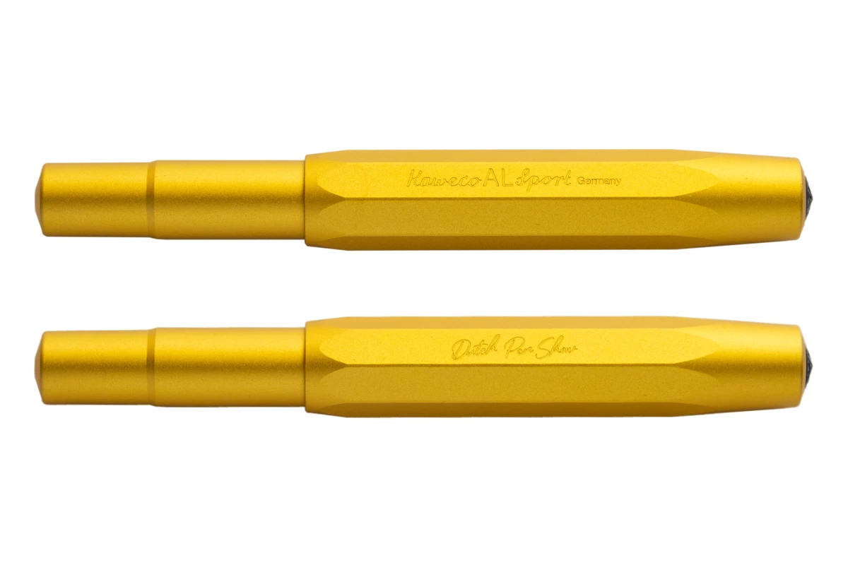 Kaweco heeft dit jaar voor het eerst een pen geleverd voor de Dutch Pen Show. Deze Kaweco AL Sport is gemaakt van aluminium, gecoat in een prachtige gele kleur, passend bij de tulpen uit het ‘Tulip Fields’ thema.