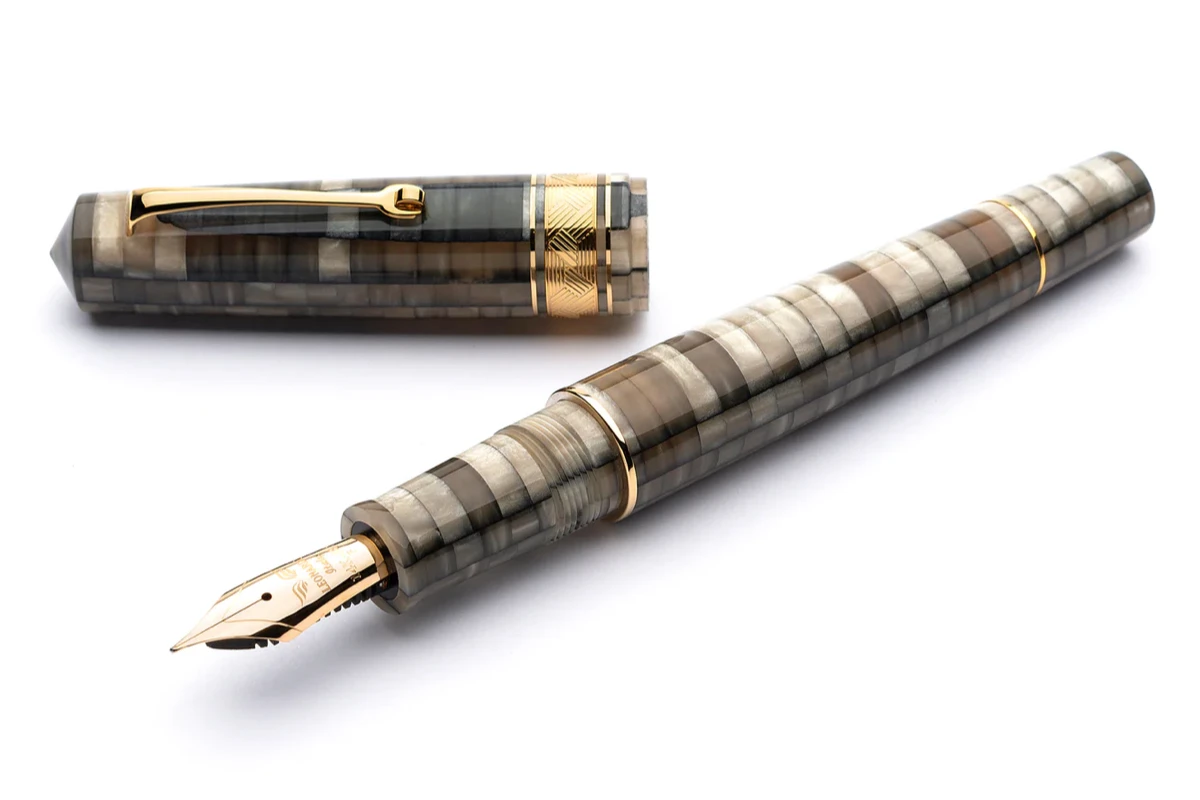Handgemaakt in Italië door Leonardo Officina Italiana, beschikt de vulpen over een betoverend mozaïek patroon geïnspireerd door de zandstranden en warme tinten van de Middellandse Zee. Het mozaïek lichaam toont een harmonieuze mix van aardse beige, tan, en bruine tinten, het creëren van een tijdloze en verfijnde esthetiek. De dop toont trots het iconische Leonardo logo, wat de toewijding van het merk aan uitmuntendheid en fijn vakmanschap symboliseert.