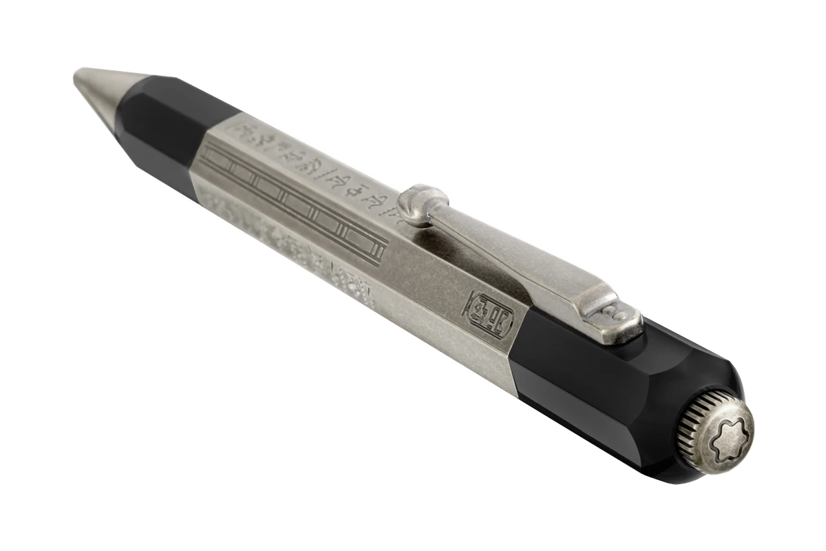 Het materiaal van de pen bestaat uit edelhars en metaal dat is gecoat met palladium en ruthenium om langdurig gebruik te garanderen. Het metalen lichaam van het schrijfinstrument toont zorgvuldig gegraveerde hiërogliefen, evenals het schrift naast de clip, wat zich vertaalt naar “Montblanc”. De clip is afgewerkt met een kever.