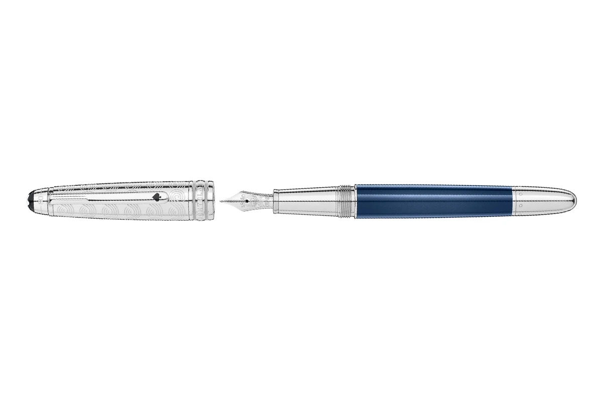 Verder vertegenwoordigen de lasergegraveerde stoomboot en golven op de pen de oversteek van zeeën tijdens het eerste deel van de reis. Wat betreft de penpunt, de heteluchtballon toont Verne’s algehele fascinatie voor reizen en is ook een symbool dat reflecteert op zijn andere roman “5 Weeks in a Balloon”. Ten slotte is de kleur Indigo Blue het resultaat van het mengen van London Purple met Middellandse Zeeblauw, een briljante manier om Verne’s verhaal in een schrijfinstrument te vertalen.