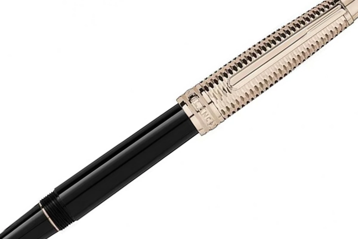 De vulpen is afgemaakt met een handgemaakte Au750/18K gouden penpunt, gerhodineerd. Met signature gold en/of signature gold-coating beschrijft Montblanc de verlichte tint geel goud die een gewaardeerde toon is geworden voor de schrijfinstrumenten van la Maison.