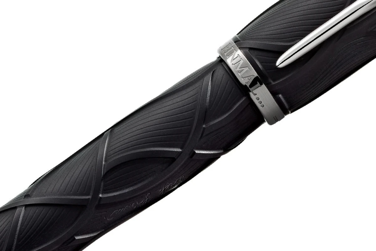 De dop wordt bekroond door het Montblanc-embleem in edelhars. De met platina gecoate clip, die doet denken aan een knobbelig stuk hout, onthult het silhouet van de gebroeders Grimm wanneer deze wordt gedraaid.