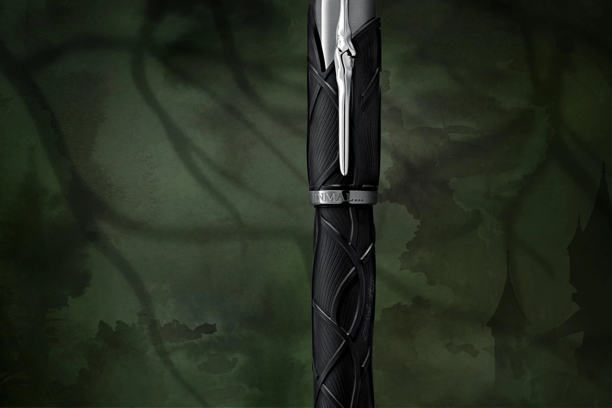 Het algemene silhouet van het schrijfinstrument heeft de vorm van een oude wandelstok en de zwarte kleur weerspiegelt de duisternis van de bossen die gewoonlijk dienen als het podium voor de folklore van de gebroeders Grimm. Daarnaast is het golfachtige patroon op de dop en de barrel geïnspireerd op het haar van Rapunzel en heeft het ook weg van wortels, aangezien de gebroeders Grimm hun taalkundige werk beschouwden als “onderzoek naar wortels”.