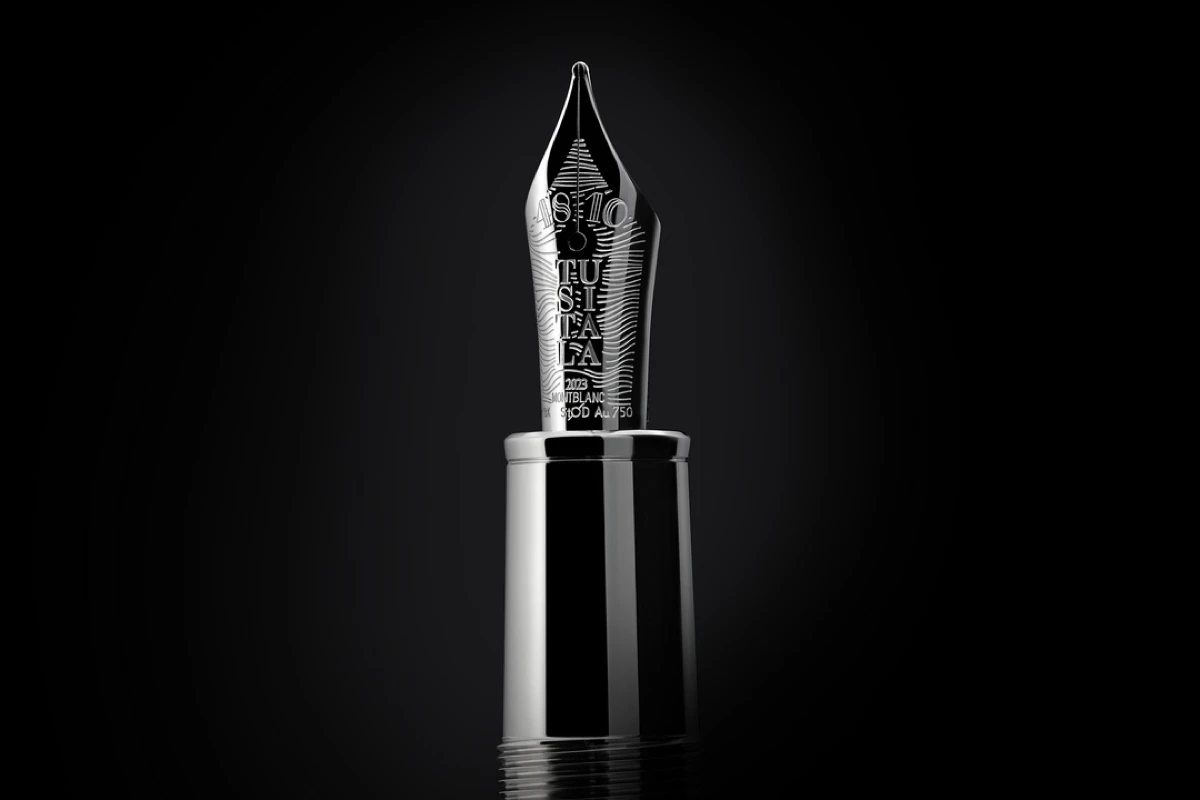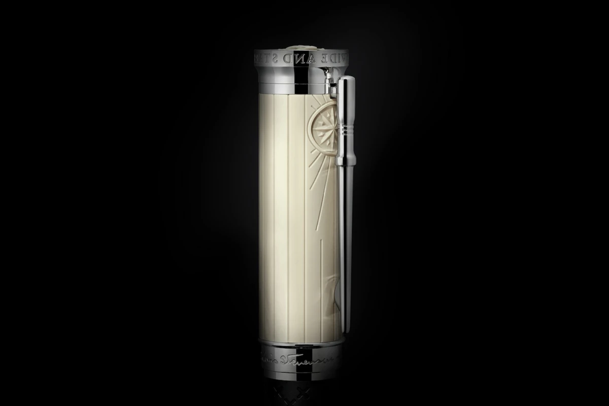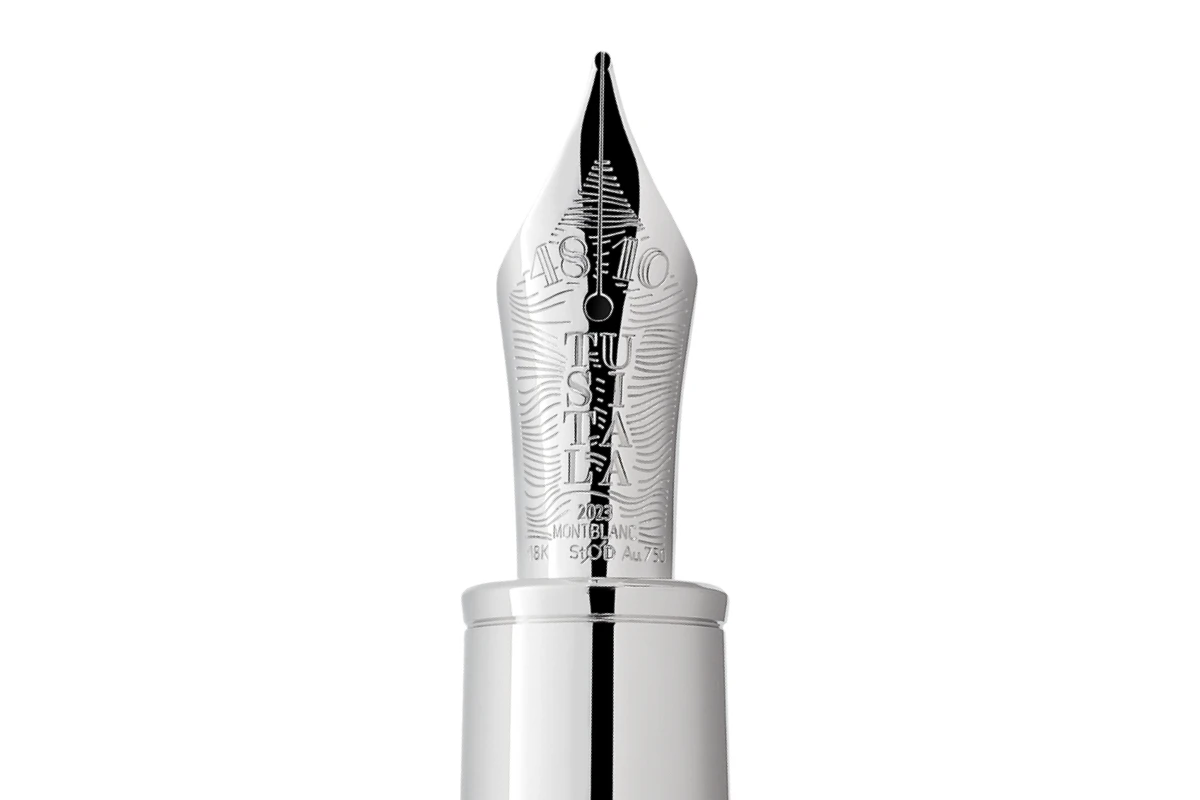 Als verwijzing naar Robert Louis Stevenson’s passie voor de zeevaart en zijn hervestiging in de Zuidzee is de handgemaakte massief Au 750 goud gerhodineerde penpunt gegraveerd met fijne golven en de titel die de Samoanen aan de grote schrijver en wereldreiziger gaven, “Tusitala”.