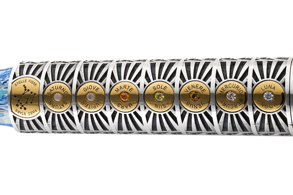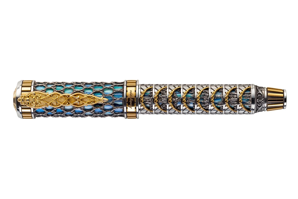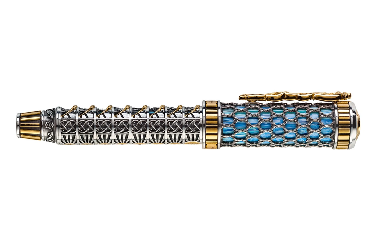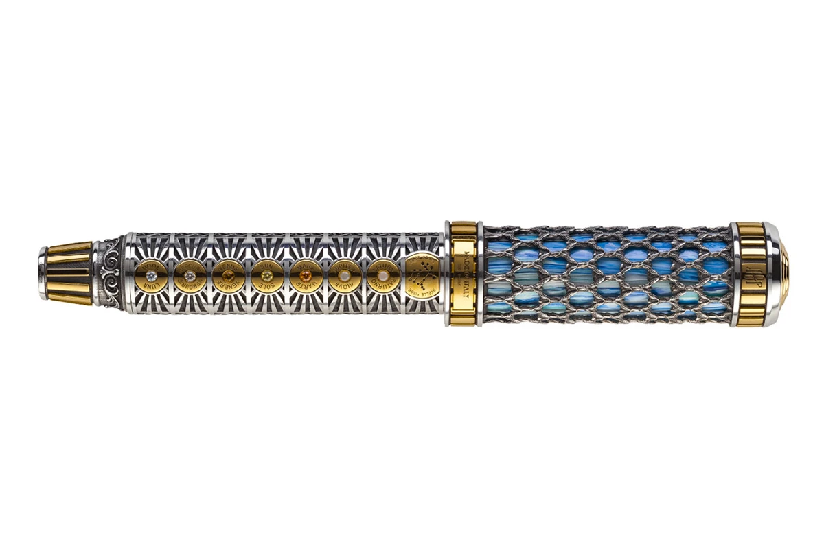Het schrijfinstrument is handgemaakt door professionals in Italië. De vulpen heeft een lichaam van sterling zilver en een 18kt gouden penpunt. De doos heeft de vorm van het in leer gebonden boek en het strookje dat de pen op zijn plaats houdt bevat Dante’s beroemde woorden: “Lasciate ogne speranza voi ch’intrate”, wat betekent “Verlaat alle hoop, gij die hier binnenkomt”.
