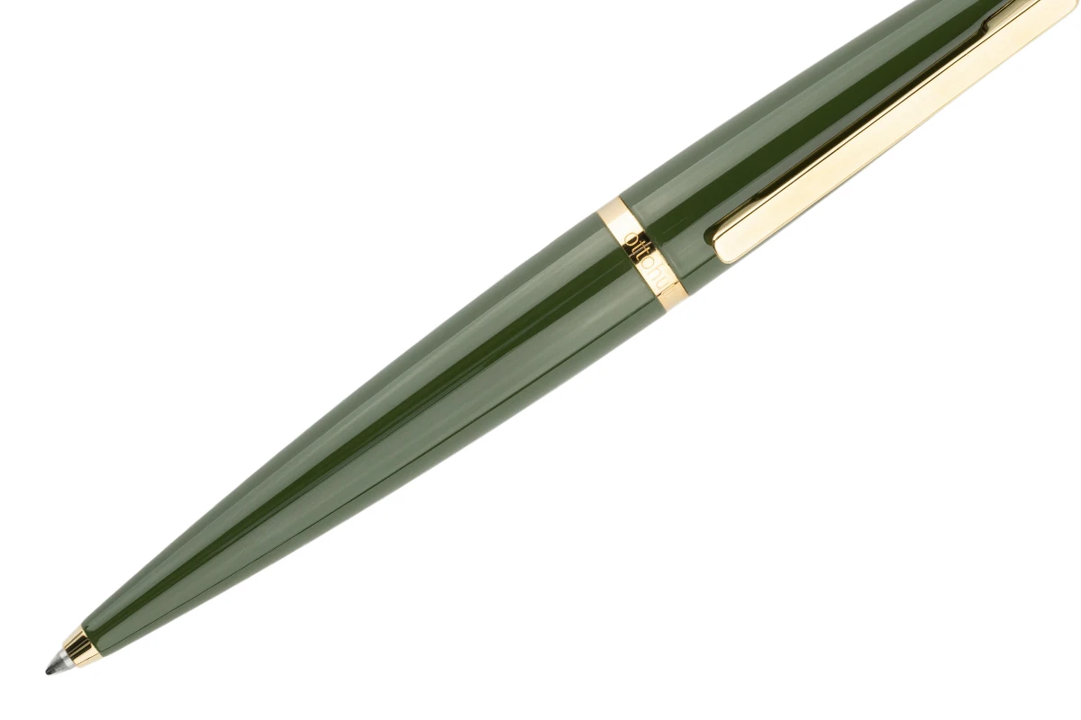 design06 overtuigt met een ergonomisch uitstekende vorm. Het beslag en het greepgedeelte van de tinten oranje en olijfgroen zijn met goud bekleed. Een baanbrekend gevoel kenmerkt design06 – een combinatie van bewezen kwaliteit en innovatieve technologie. Door de nieuwe contouren en oppervlakken die met speciale diamantgereedschappen zijn bewerkt, ontstaat een overweldigend natuurlijke compositie. Het gerenommeerde origineel is qua verwerkingskwaliteit opnieuw gelanceerd, met loop en dop van massief materiaal. De karakteristieke verende clip en de zacht afgeronde contouren en oppervlakken liggen perfect in de hand, terwijl het kleurrijk gelakte en meervoudig gecoate oppervlak voor een bijzonder aangenaam schrijfgevoel zorgt. design06 staat garant voor uniek schrijfplezier: elegantie en kwaliteit made in Germany, harmonieus gecombineerd met de nieuwe technologie.