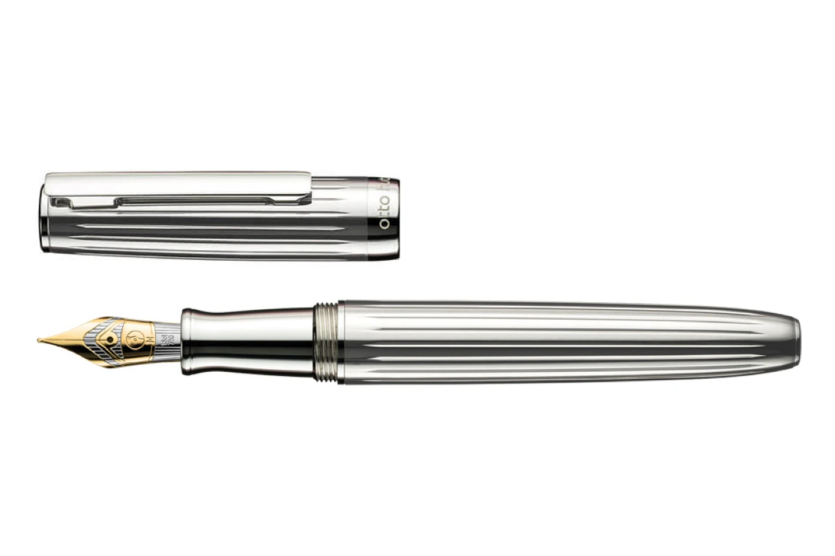 De Design 07 is het flagship ontwerp van Otto Hutt en is een combinatie van vorm en functionaliteit, verpakt in een fraai design. De dop en het lichaam van het schrijfinstrument zijn vervaardigd uit sterling zilver. De vulpennen hebben een buitengewoon grote penpunt, die tevens van goud is.