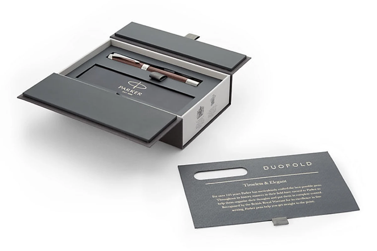Wordt verpakt in een luxieuze Parker cadeaudoos.