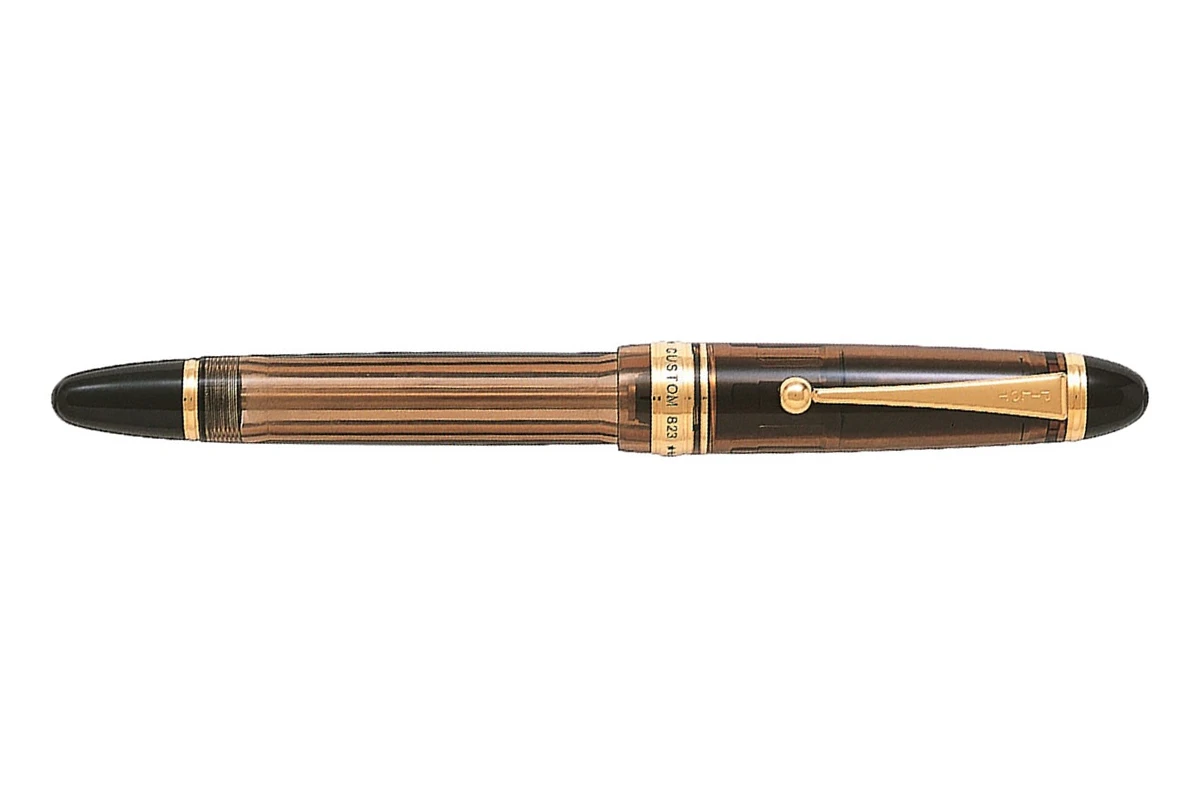 De vulpen heeft een transparant bruin lichaam gemaakt van een luxe acrylhars, bedekt met een delicate laag urushi-lak. Drie lagen worden zorgvuldig aangebracht in een tijdrovend proces van het uitharden en polijsten van de lagen, allemaal om de meest duurzame vulpennen te maken.
