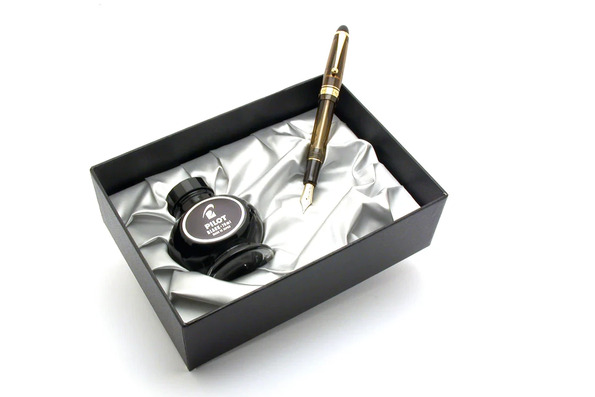 De pen is afgewerkt met een 14-karaats gouden penpunt en een piston-inktsysteem, dat prachtig kan worden gecombineerd met de verschillende tinten van Pilot’s iroshizuku inkten.