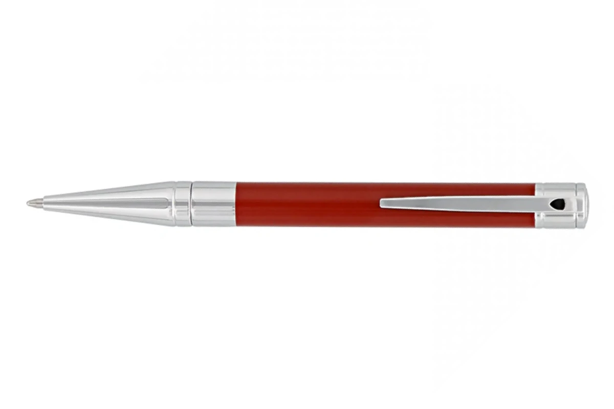 De pen is gemaakt van rode lak en chromen details waarin het Dupont wapen zichtbaar is.
