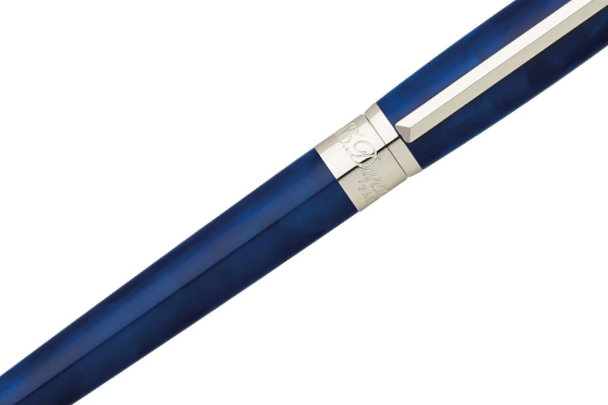 Deze vulpen van S.T. Dupont maakt deel uit van de Atelier Line D-collectie. Het is gemaakt met blauwe natuurlijke lak en heeft een palladium-afwerking.