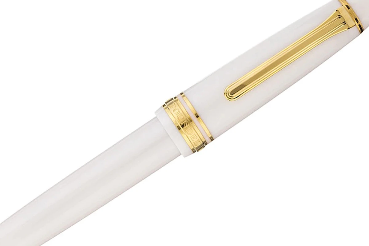 De 1911 serie van Sailor straalt luxe uit, belichaamd in een traditioneel ontwerp. Dit blijkt uit de klassieke wit gekleurde behuizing van hoogwaardig hars met gouden details.