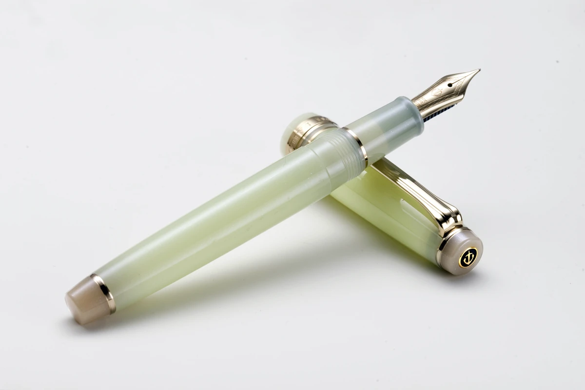 De vulpen is gemaakt van hars en uitgerust met een 14k-gouden penpunt.