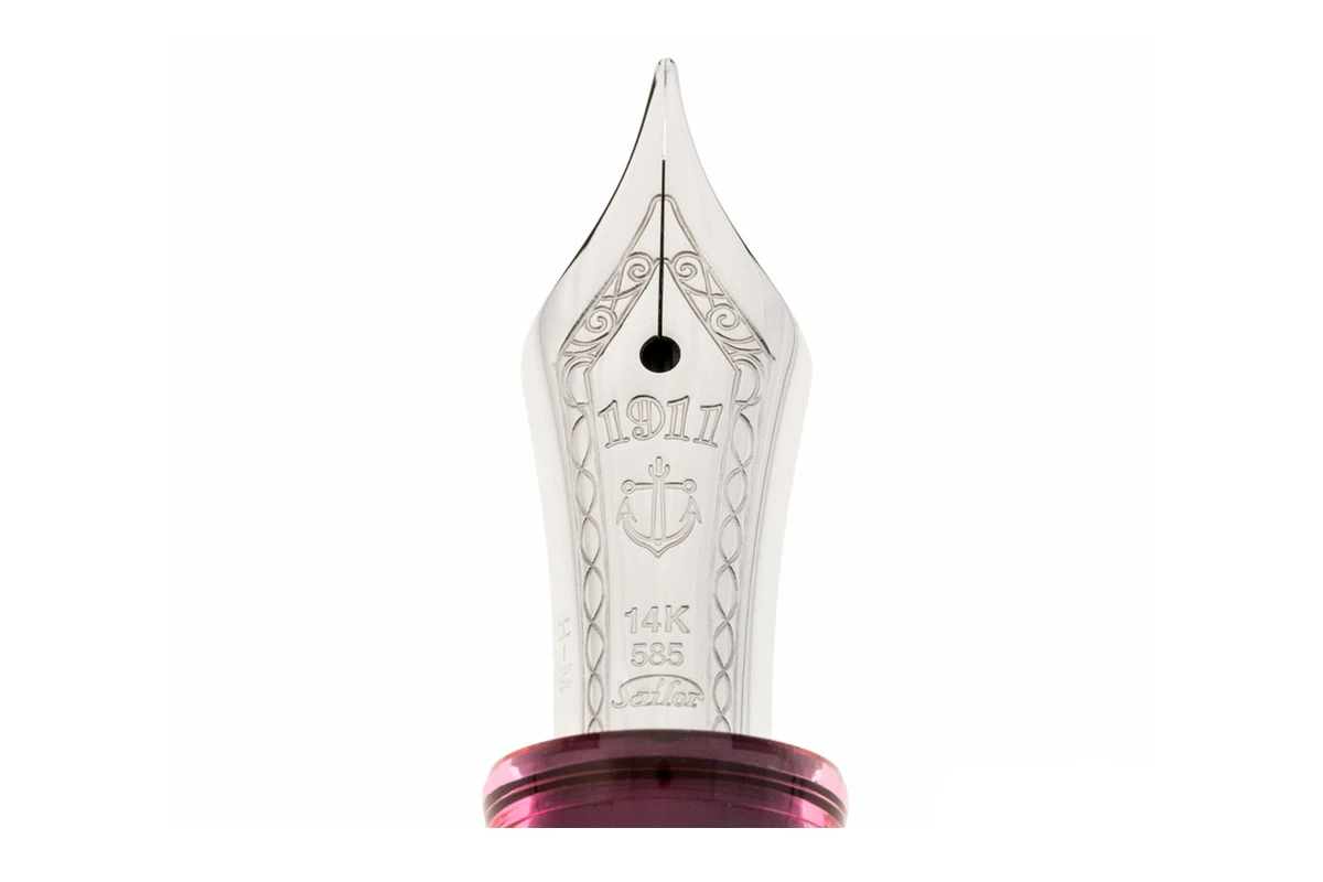 Dit schrijfinstrument heeft een doorschijnende, fel roze behuizing waardoor het inktniveau te allen tijde kan worden waargenomen. Verder bevat de pen zilveren details en een 14kt gouden penpunt met rhodium plating voor de soepelste schrijfervaring. De pen kan worden gebruikt met een inktpatroon of converter.