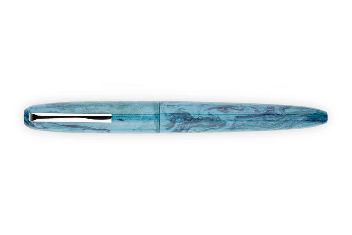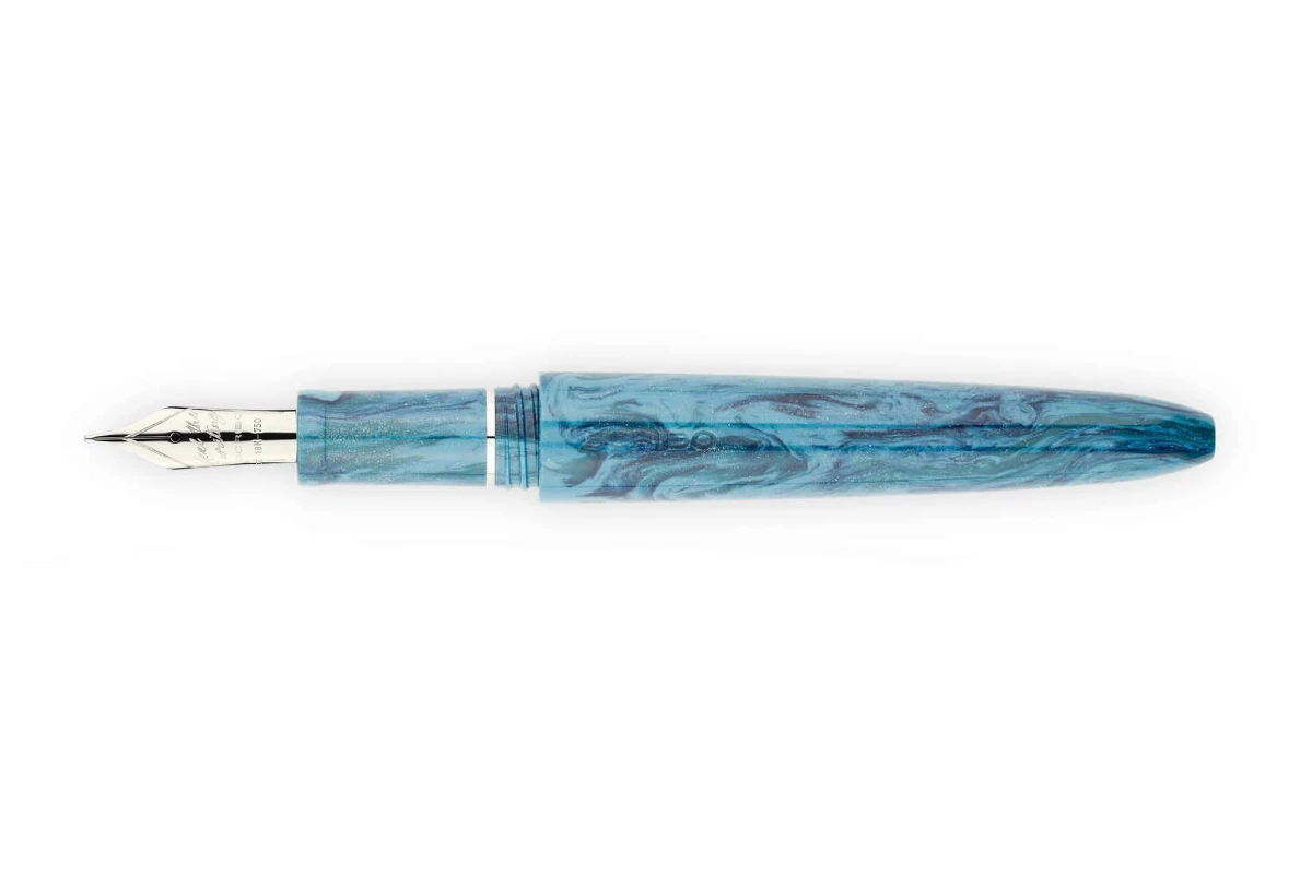 De Piuma Fusione heeft een lichaam met verschillende blauwe tinten. De dop, houder en sectie zijn gemaakt in Diamond Cast, en de clip en metalen onderdelen met platina afwerking. De pen heeft een 18K gouden penpunt en kan gebruikt worden met cartridges of een converter.