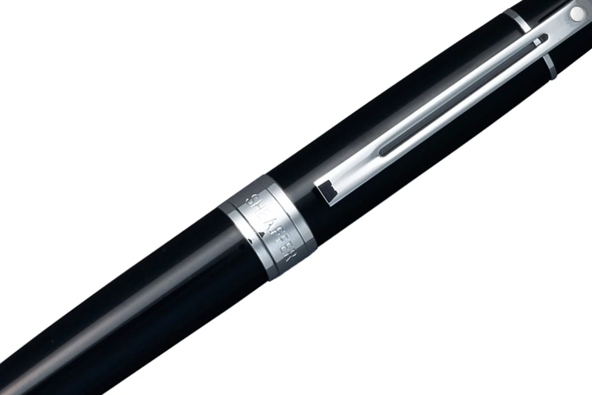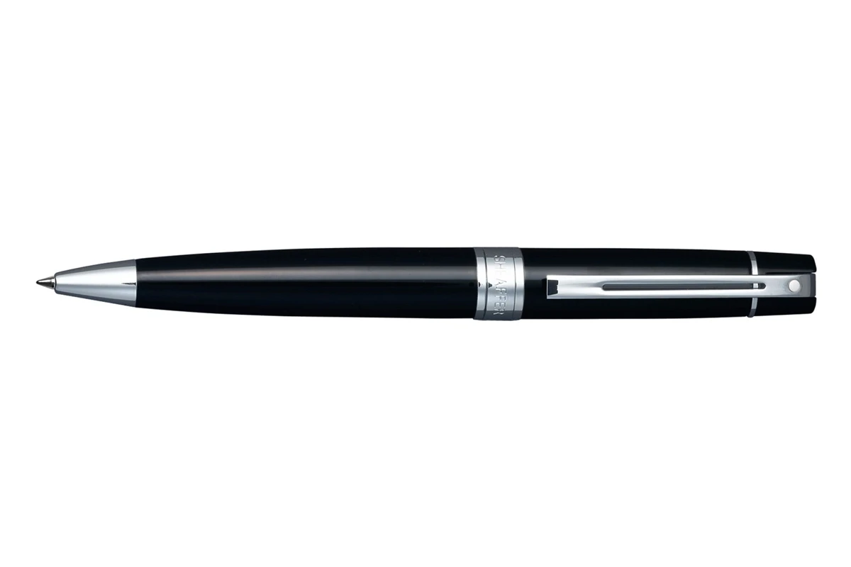 Deze mooie Sheaffer 300 balpen heeft een glimmend zwart gelakt lichaam en dop, welke beiden zijn afgewerkt met chromen finishes. Het Sheaffer 300 model heeft een modern design. Samen met de mooie finishes heeft dit geresulteerd in de elegantie die deze pen uitstraalt.