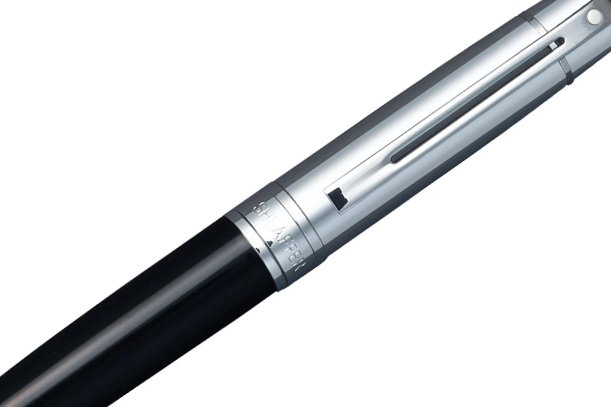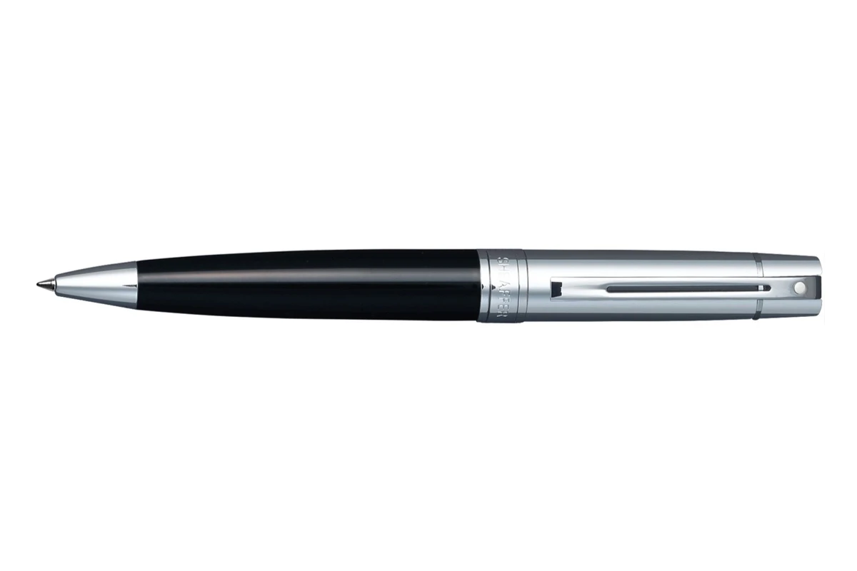 Deze mooie Sheaffer 300 balpen heeft een glimmend zwart gelakt lichaam en glanzend chromen dop. Het Sheaffer 300 model heeft een modern design. Samen met de mooie finishes heeft dit geresulteerd in de elegantie die deze pen uitstraalt.