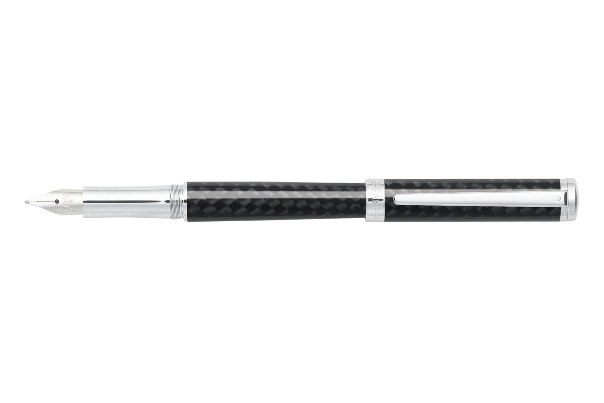 Deze mooie Sheaffer Intensity vulpen heeft een carbonfiber lichaam en dop, en is afgewerkt met chroom plated accenten. Het slanke design van deze pen met het gestroomlijnde, dunne cilinder profiel en tijdloze afwerkingen, maken deze pen een prachtig exemplaar.