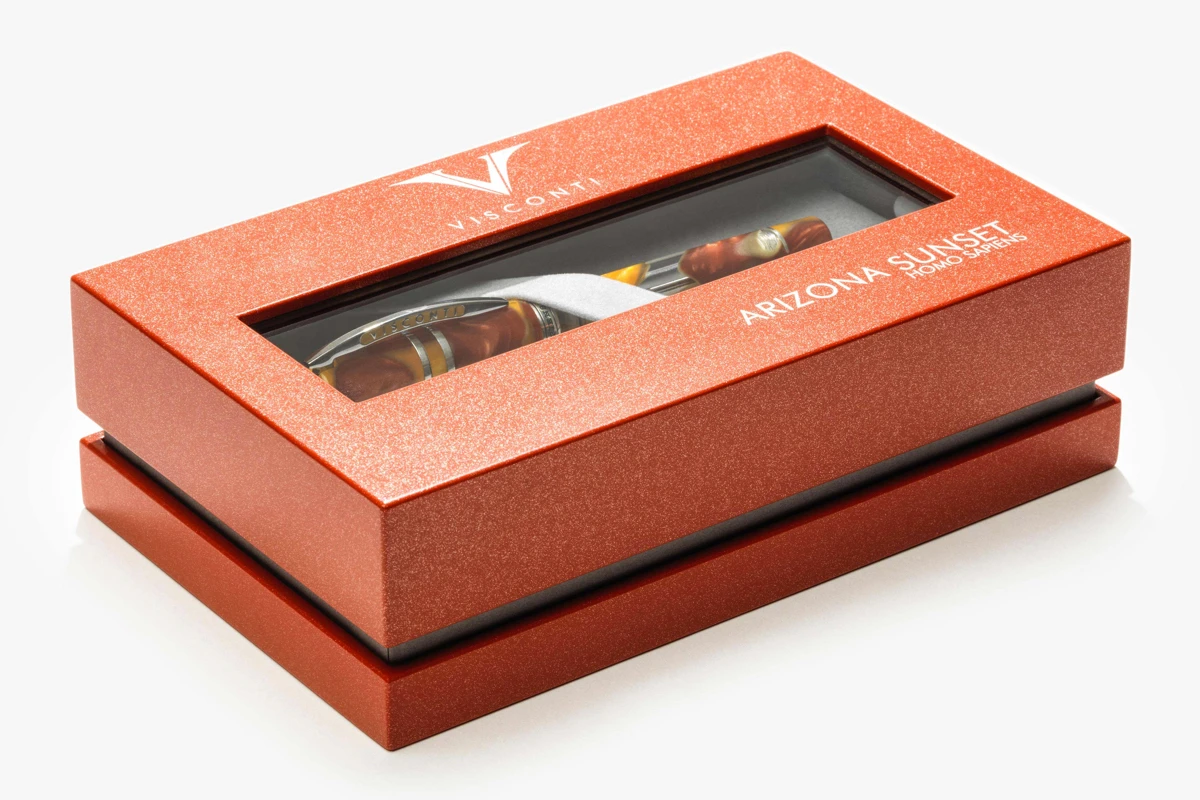 De pen is ook uitgerust met Visconti’s gepatenteerde Double Reservoir Power Filler-systeem, waarmee u gemakkelijk een grote hoeveelheid inkt kunt laden. De pen wordt geleverd in een limited edition doos die is geïnspireerd op het landschap van Arizona.