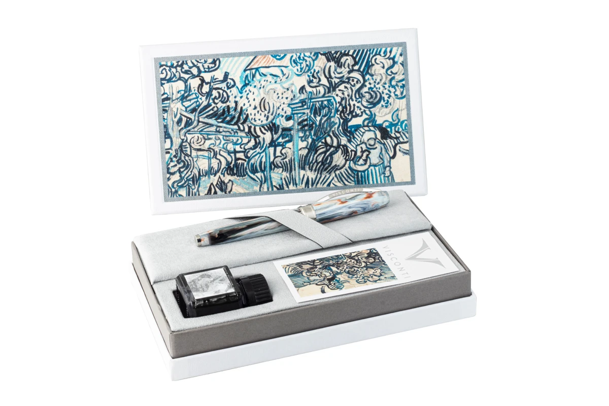 De Visconti van Gogh ‘Old Vineyard with Peasant Woman’ collectie is verkrijgbaar als vulpen, balpen en rollerball. Iedere pen wordt geleverd in een speciale verpakking waar ook de afbeelding van het originele werk in is verwerkt.