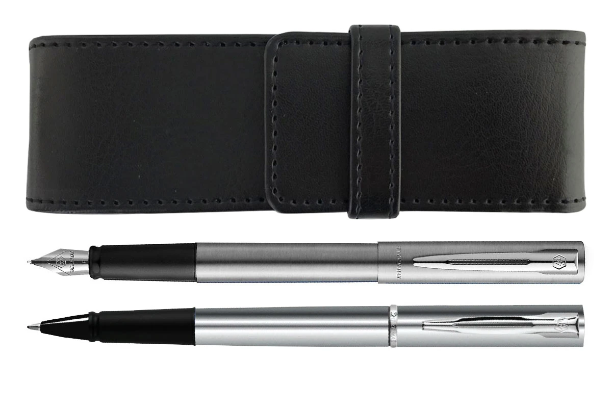 Deze betaalbare maar uitzonderlijke set zal uw nieuwe dagelijkse metgezel worden. Het bevat waardevolle items die u nodig heeft voor uw dagelijkse schrijfbenodigdheden. De set bestaat namelijk uit een Waterman Allure vulpen en rollerball, netjes verpakt in een lederlook pen-etui.