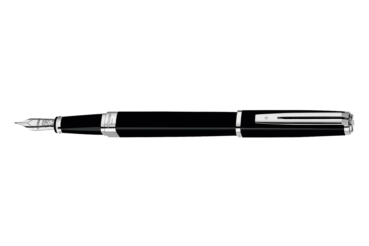 Gereflecteerd door de magie van dit Waterman-meesterwerk, het indrukwekkende contrast van luxe zwarte lak en hedendaagse zilveren decoratie weergeven een moderne stijl.