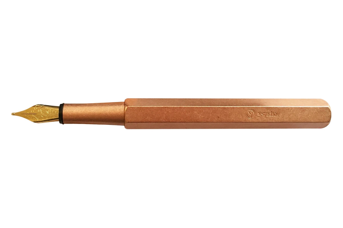 YSTUDIO’s draagbare koperen vulpen weergeeft een nieuwe manier om je vulpen mee te nemen. Je kunt het aan je tas hangen en openen om te beginnen met schrijven.